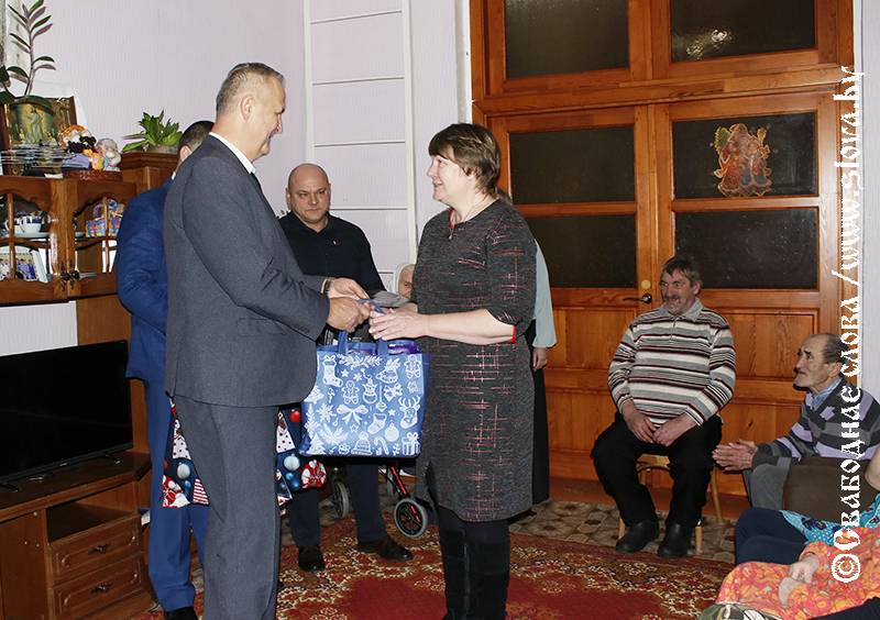 В рамках доброй предпраздничной акции председатель Рогачевского районного Совета депутатов Владимир Феоктистов поздравил жителей отделения круглосуточного пребывания для граждан пожилого возраста и инвалидов в поселке Белицк с наступающим Новым годом и Рождеством.